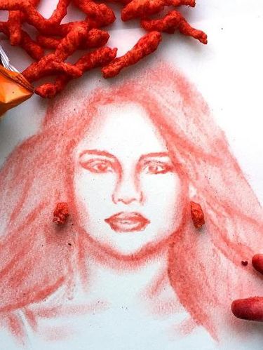 Jessie membuat wajah Jennifer Lawrence dari pizza. Bagaimana bisa? Ia menggunakan saus pizza untuk membentuk wajah J-Law. Yang paling unik dari gambar tersebut adalah memanfaatkan keju yang dibuat seperti rambut.
