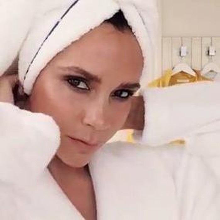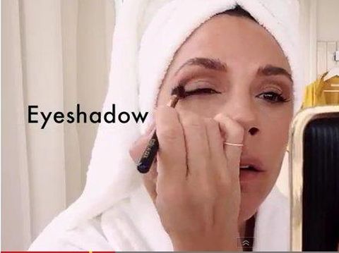 Video berdurasi 58 detik itu hanya meng-highlight riasan mata, pipi serta bibir. Muncul dengan jubah mandi dan handuk di kepala, wajah mantan personil Spice Girls ini sudah tampak flawless dengan pemakaian foundation serta concealer.