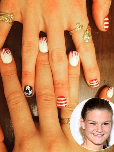 Perenang asal Amerika Elizabeth Beisel juga menunjukkan kuku bertema warna Bendera Amerika Biru dan Merah. Agar tidak monoton, kuku Elizabeth dihias dengan kuteks warna gold di sebagian kukunya.