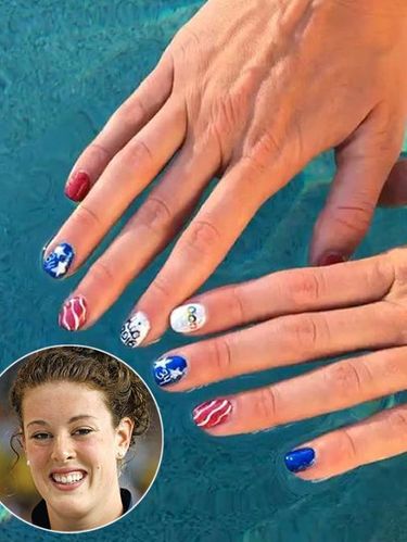 Atlet renang Kathleen Baker memamerkan kuku-kuku cantiknya sebelum berlaga di Olimpiade 2016. "Olympic nails ready," tulis Kathleen. Wanita yang baru pertama kali mengikuti Olimpiade itu menghias kukunya dengan tema bendera Amerika dengan logo Olimpiade.