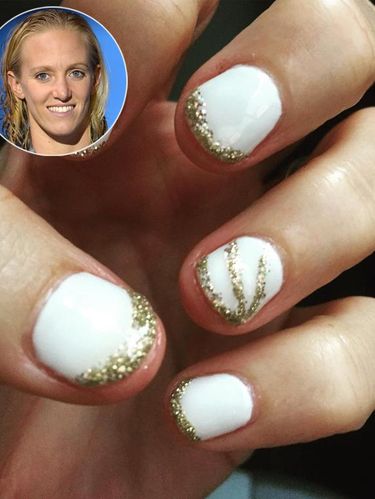 Kepercayaan diri bisa datang dari mana saja, termasuk dengan menghias kuku. Dana Vollmer mengaku bahwa dirinya menjadi lebih semangat dan PD berkat kuteks warna putih dengan kreasi glitter warna emas. "Race day is almost here!!! I always get pumped when I get my #luckywhite nails for competition!! We leave for Rio tomorrow!!!" tulisnya di Twitter.