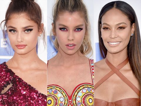 Stella Maxwell juga menggunakan eyeshadow nuansa ungu-kemerahan yang senada dengan warna bausananya. Maxwell membuat eyeshadownya dengan teknik smokey eyes. Teknik makeup mata yang sama juga ditampilkan oleh Joan Smalls. Ia pun tampil dengan makeup serta busana yang senada. Gaya riasan tiga wanita tersebut bisa menjadi panduan untuk Anda yang juga ingin tampil 'matching'.