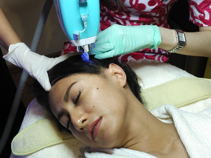 "Energi Jet Bullet ini cepat sekali pergerakannya sehingga bisa masuk ke dalam kulit tanpa suntikkan. Makanya tetap ada bekasnya benjolan kecil ini sebagai tanda bahwa cairan serumnya masuk ke dalam kulit," kata dr. Riska Melanie saat acara peluncuran perawatan Airjet Kinetic Technology di klinik kecantikan Eternel Concept di Gunawarman, Jakarta, Kamis (6/10/2016).