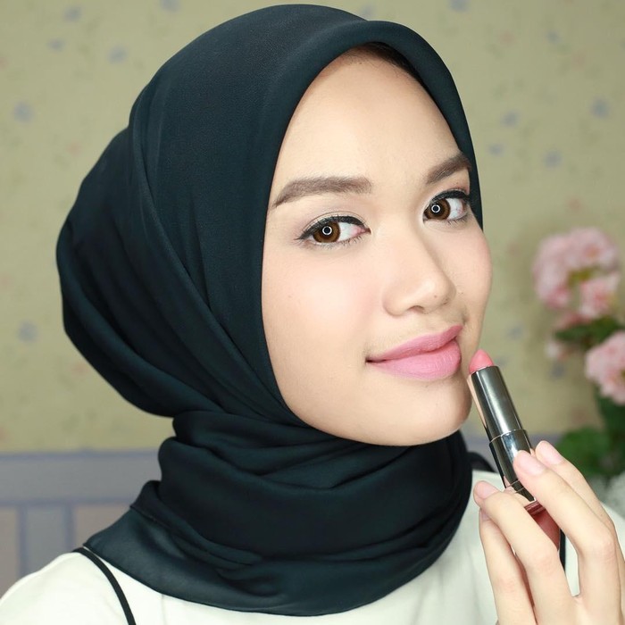 "Kalau misalkan aku pakai jilbab yang polos pasti ada yang bold di muka aku, seperti riasan matanya sengaja dibuat lebih tebal. Warna kosmetik bibirnya ini bisa dibuat lebih soft yang senada dengan jilbab agar atensinya lebih ke mata. Kuncinya, jika sudah ada beberapa yang bold harus ada salah satunya yang soft atau nude agar tidak terlalu berlebihan," jelasnya.