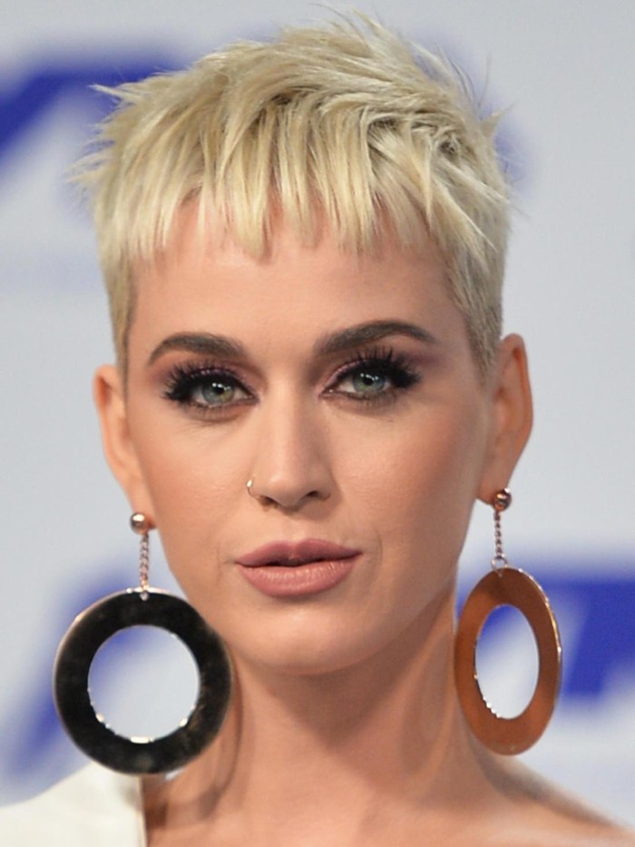 Katy Perry terlihat cantik dengan pulasan lipstik pink salem.