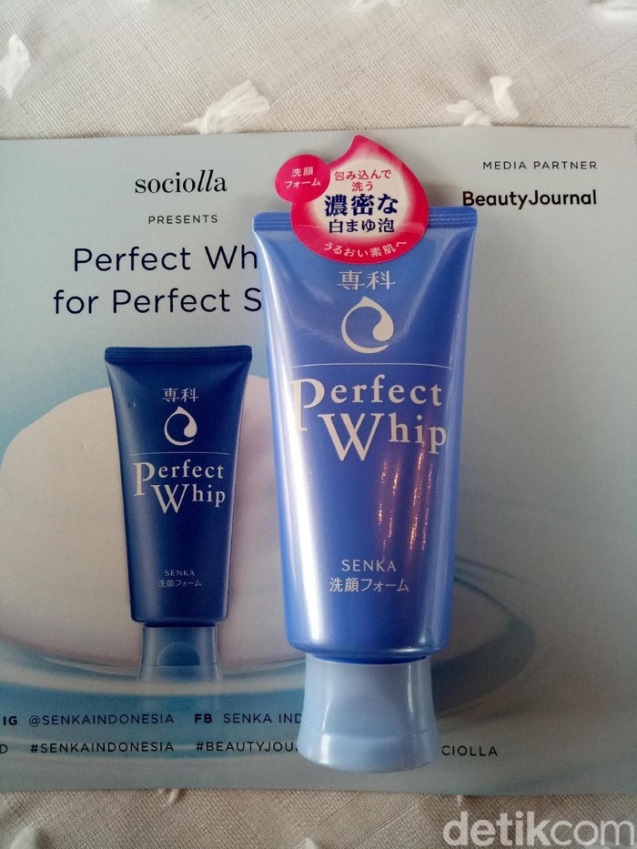 Salah satu sabun wajah yang direkomendasikan adalah Senka Perfect Whip. Senka adalah brand dari Jepang di bawah naungan perusahaan kecantikan Shiseido yang populer dengan sabun wajah Perfect Whip-nya itu.