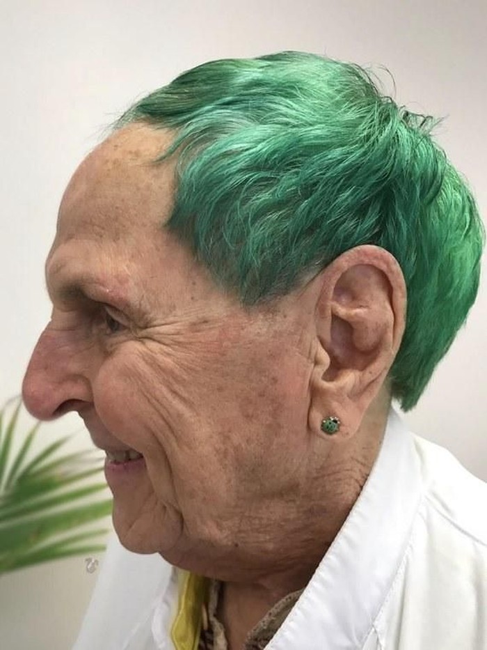 Kakek 92 tahun warnai rambut jadi hijau Foto: dok. Liz Cordis/Instagram |