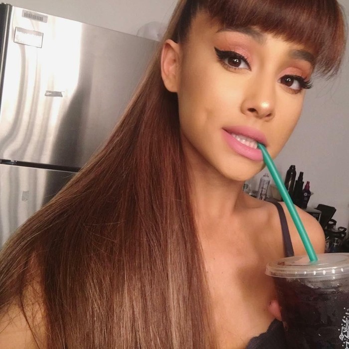 Penampilan barunya tersebut ditunjukkan di Instagramnya, Kamis (15/11/2018). Tidak menjelaskan tentang rambut barunya, Ariana menulis keterangan foto: "This filter took my eyebrows away but i promise they're there."