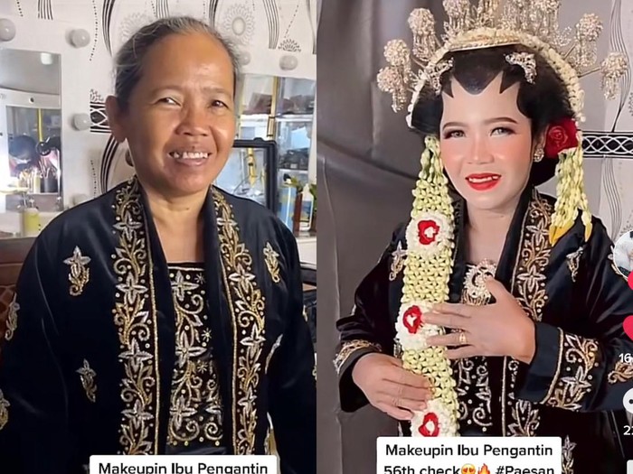 "Makeup ibu pengantin 56 tahun check #paesan Masya Allah cantik sekali makeup bu @nadyaauliazulfa," tulis akun TikTok @nadyaauliazulfa1.
