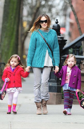 Anak-anak tidak takut untuk mengenakan busana berwarna terang baik itu untuk atasan maupun bawahan. Seperti gaya si kembar putri Sarah Jessica Parker ini. Keduanya memakai jaket berwarna terang yang membuat mereka tampak cute.