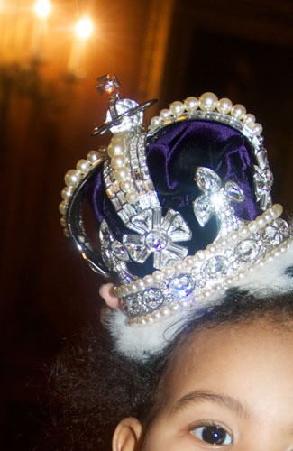 Blue Ivy sepertinya bukan subyek utama di foto ini karena wajahnya hanya tampak separuh. Mahkota yang menghiasi kepalanya menjadi fokus dari sang juru foto, entah itu Beyonce sendiri atau sang ayah, Jay-Z. Dalam foto ini, Blue tampak memakai mahkota bertabur mutiara dan permata.