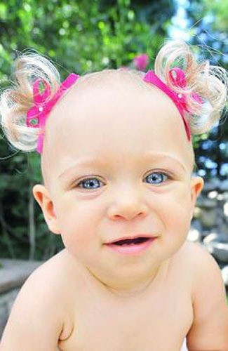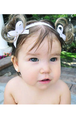 Saat ini bukan hanya wig saja yang bisa mempermanis penampilan bayi perempuan Anda. Sebuah situs online shop lainnya bernama Bebe Doos menjual bandana dengan hiasan dua kunciran rambut di sisi kiri dan kanan kepala.