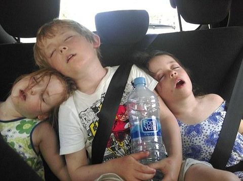 Perjalanan dengan mobil bisa membuat mengantuk. Apalagi jika sebelumnya mereka melakukan aktivitas yang melelahkan Ketiga kakak-adik ini pun kompak tidur di dalam mobil dengan menyandarkan kepala satu sama lain.