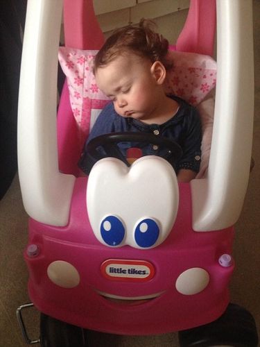 Anak kecil belum bisa mengungkapkan keinginannya, termasuk ketika dia sebenarnya sudah mengantuk dan ingin tidur. Si kecil Sofia ini contohnya. Sofia tetap terus bermain di dalam mobil-mobilannya, meskipun sangat mengantuk. Alhasil dia tertidur di dalam mobil mainannya.