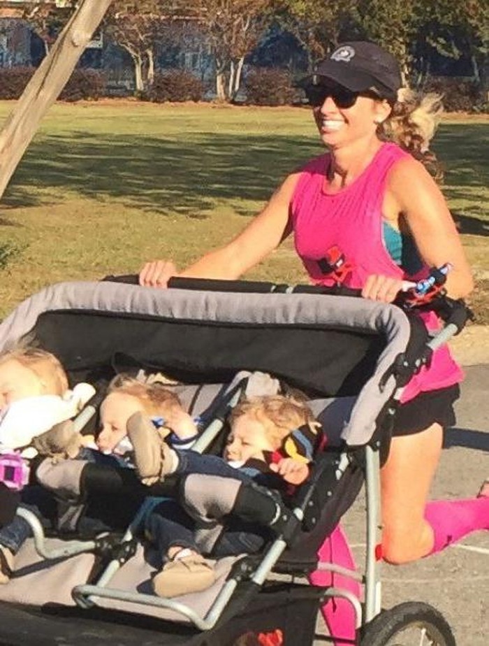 Suzy Goodwin adalah satu dari sekian banyak pelari yang berlaga di North Carolina Halloween Half Marathon, Minggu (30/10/2016). Di kompetisi itu, Suzy menjadi pusat perhatian lantaran berlari sambil memboyong ketiga anak kembarnya.