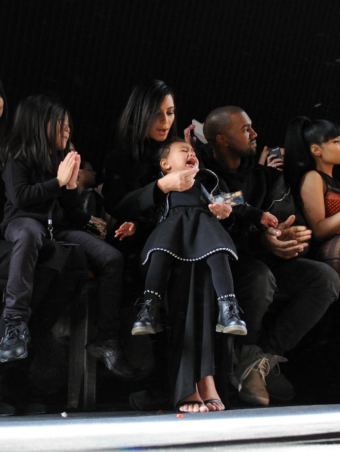 Di tengah fashion show, North West sempat rewel dan membuat Kim kewalahan menenangkannya. Beberapa hari kemudian, kejadian tersebut terulang lagi di fashion show Alexander Wang.