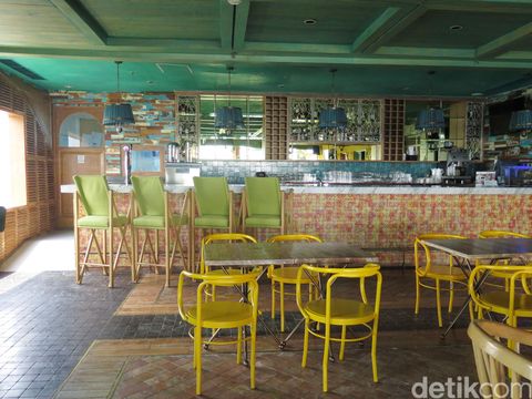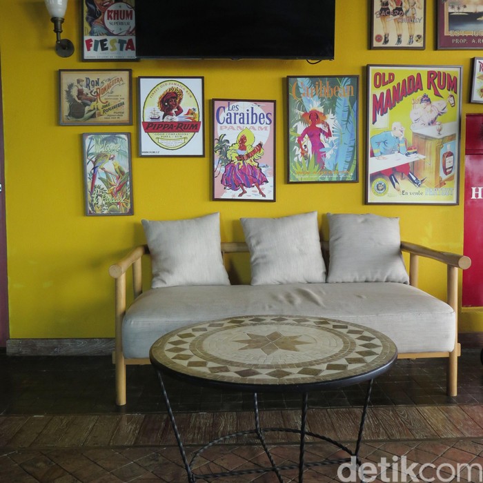 Selain area lounge, Anda juga bisa memilih duduk di ruangan dekat bar. Ada beberapa sofa panjang serta kursi yang penataannya dibuat seolah berkesan homey. Area ini pun tak kalah nuansa cerianya. Beberapa lukisan dan hiasan dinding bertema pantai menambah sisi menarik dari restoran yang menawarkan 100 variasi jenis minuman rum ini.