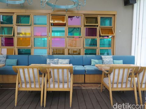 Desainnya yang dipenuhi warna-warna cerah nan hangat membangkitkan suasana ceria begitu Anda keluar dari lift menuju restoran ini. Di siang hari, restoran ini mendapat pencahayaan alami sinar matahari, karena sebagian besar ruangan beratapkan dan berdinding kaca transparan.