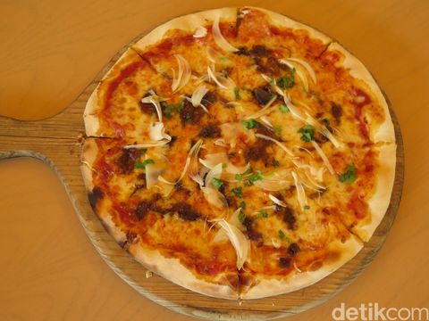 Salah satu makanan yang wajib dicoba adalah Pizza Rendang. Pizza ini memiliki roti yang tipis dengan taburan rendang di atasnya. Dagingnya renyah dan bumbunya tidak terlalu menyengat sehingga cocok bagi Anda yang bukan penikmat rempah-rempah. Ukuran pizza cukup besar bisa untuk empat orang. Pizza Rendang merupakan salah satu signature dari OPEN} Restaurant.