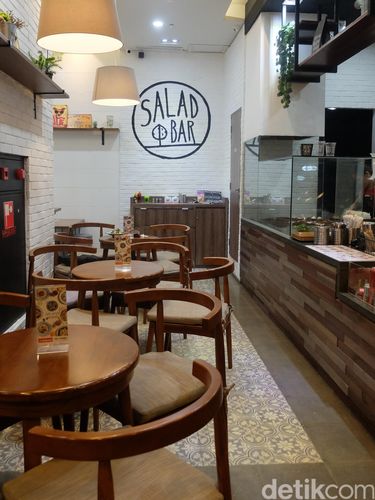 Berada di Salad Bar serasa di dapur rumah sendiri berkat konsep interiornya yang bernuansa homey dan desain dapurnya yang terbuka alias open kitchen. Pengunjung pun dapat melihat bagaimana makanan dan minuman pesanan mereka dibuat.