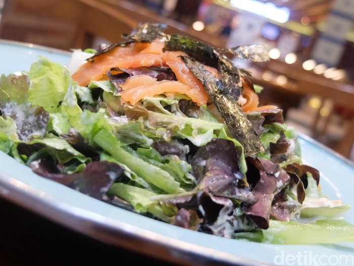 Jika malas meracik sendiri, pilih saja hidangan a la carte yang tertera di menu. Pilihan Wolipop jatuh ke beberapa menu jagoan Salad Bar. Salah satunya Wasabi Salmon Salad.