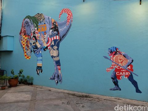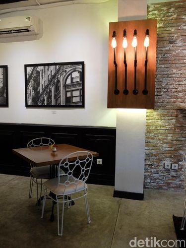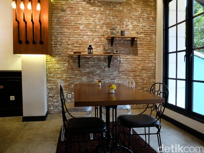 Restoran dua lantai ini menawarkan suasana nyaman dan homey dengan gaya eklektik. Anda bisa melihat perpaduan antara gaya rustic, industrial sekaligus retro pada penataan interiornya. Lukisan mural menghiasi beberapa bagian dinding ruangan sehingga menghadirkan kesan kontemporer. Salah satu mural yang menjadi focal point restoran ini justru berada di bagian luar; berupa lukisan surrealis bertema urban di atas dinding biru berwarna cerah.