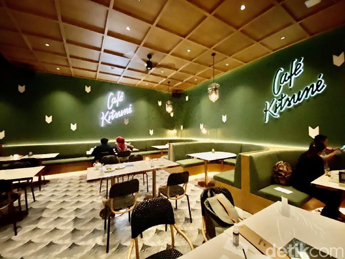 Warna hijau yang mendominasi menyumbangkan kesan jenaka. Sementara itu, atmosfer hangat hadir lewat langit-langit kayu yang mewakili estetika Jepang. Secara keseluruhan, Cafe Kitsune cukup fotogenik untuk konten media sosial. Namun pada malam hari, desain interiornya tak begitu menonjol karena pencahayaan yang remang-remang.