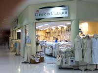 Begitu masuk ke dalam mal perhatian kami tersita oleh sebuah toko yang isinya berwarna serba krem, Green Cotton. Toko ini menjual pakaian, handuk, tas, dan topi. Semuanya terbuat dari bahan katun organik. Selain ramah lingkungan, tampaknya pakaian tersebut sangat nyaman dikenakan.