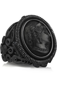 Anda yang menyukai karya seni bernilai tinggi akan menyukai cincin perak keluaran label eksklusif Bottega Veneta. Dengan tingkat kerumitan yang tinggi, wajah wanita dapat terukir dalam batuan mewah dengan sempurna. Setelah diukir, untuk menghasilkan warna perak hitam yang berkilau cincin ini harus melalui proses oksidasi. Tidak mengherankan bila cincin ini dihargai Rp 20,5 juta karena kerumitan dan keunikan bentuknya.
