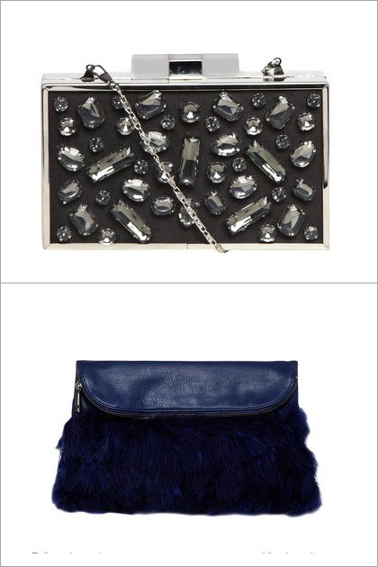 1. Navy Feathered Clutch Bag