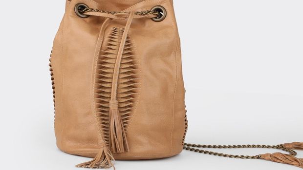 Bucket bag berikut ini juga juga sedang cukup tren di kalangan pecinta mode. Yang membuatnya spesial adalah detail cutting unik di bagian depan serta bawah. Tas kulit yang terinspirasi dari kebun tropikal itu juga dilengkapi dengan rantai dan tassel sehingga semakin menawan. Palma Large Special Bottom Tan dari brand Unique Allure itu diskon dari Rp 4,5 juta menjadi Rp 3,1 juta.