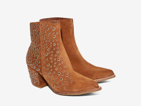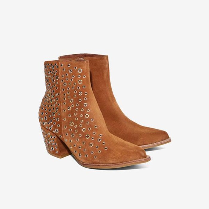 Jeffrey Campbell menyediakan pilihan sepatu berdetail eyelet yang lebih 'aman'. Alas kaki berupa ankle boots berikut bisa digunakan saat hangout bahkan bekerja. Dipenuhi aksen eyelet di sebelah luar dan berwarna cokelat camel, item tersebut juga akan terlihat unik. Miliki sepatu itu dengan harga Rp 3 jutaan. (ami/ami)