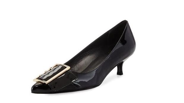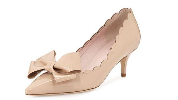 Ingin tampil manis dengan high heels di tempat kerja? Kenakan saja kitten heels dengan hak pendek berwarna netral seperti opsi satu ini. Item berikut pun tak tampil terlalu sederhana karena detail pita dan potongan scallop. Selain dikenakan ke kantor, sepatu seharga Rp 4,3 jutaan itu pantas diaplikasi kala hangout atau pesta kasual.