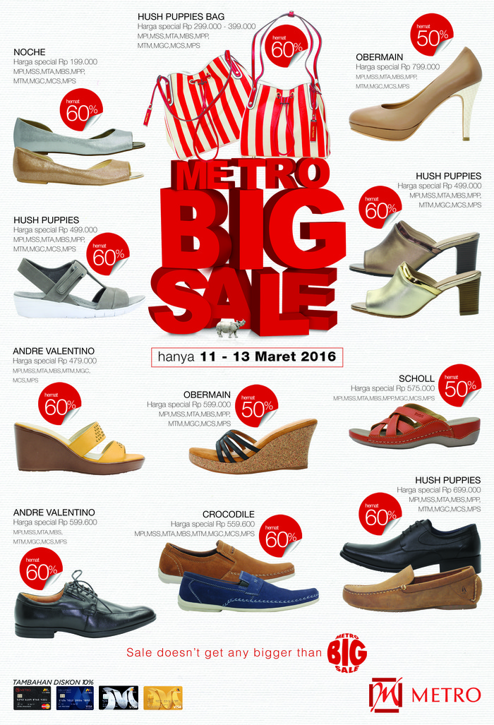 Metro Department Store kembali memberikan penawaran diskon yang pantas dilirik. Kali ini potongan harga diberikan pada koleksi tas dan sepatu wanita. Produk-produk yang sale pun cukup bervariasi dan datang dari brand-brand ternama. Seperti apa opsi-opsi menarik yang disediakan di Pondok Indah Mall?
