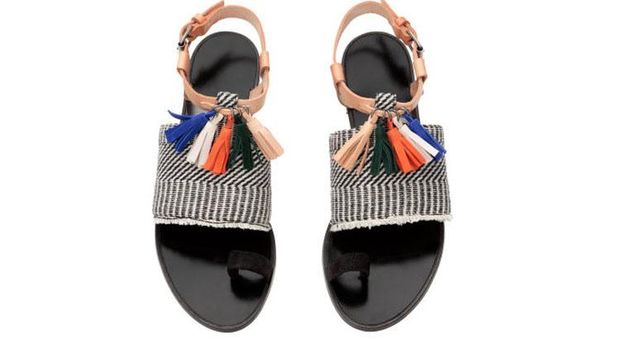 Untuk Anda yang ingin berkegiatan lebih dinamis, miliki sandal dengan slingback atau ankle strap agar lebih leluasa bergerak. Alas kaki serupa pun ditawarkan oleh retailer Swedia ini. Sandal berikut terlihat unik dan eksklusif karena dihadirkan dengan kain berpola jacquard. Adapun lima tassel yang berbeda warna sehingga menambah daya atraksi pada penampilan. Miliki item tersebut seharga Rp 1 jutaan.