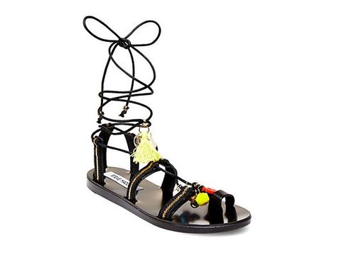 Merek Steve Madden menampilkan sandal gladiator yang serupa dengan opsi dari Asos sebelumnya. Namun kali ini sandal didominasi oleh warna hitam. Meski begitu, tersedia detail rantai emas kecil, tassel kuning, dan beberapa bandul yang menjadikannya unik. Padukan dengan busana bernuansa kuning jika ingin serasi dengan alas kaki seharga Rp 1,3 jutaan berikut.