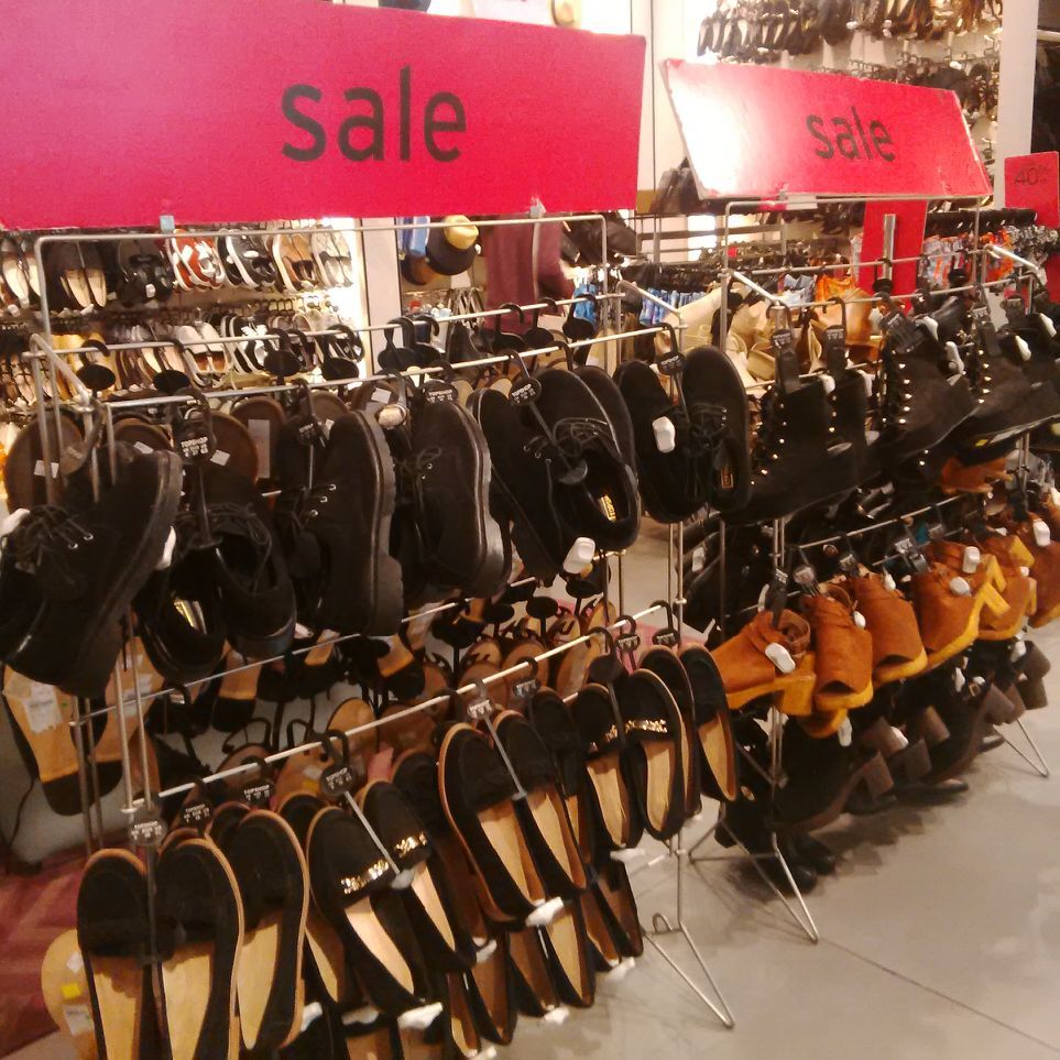 Tak hanya busana, serangkaian sepatu juga susut harga. Ankle boots hitam dengan pengait emas diskon 50% menjadi Rp 500 ribu. Sepatu oxford hitam seharga Rp 630 ribu menjadi Rp 520 ribu. Adapun heels dengan dua strap warna pink dan hitam yang diskon 40% menjadi Rp 600 ribu.