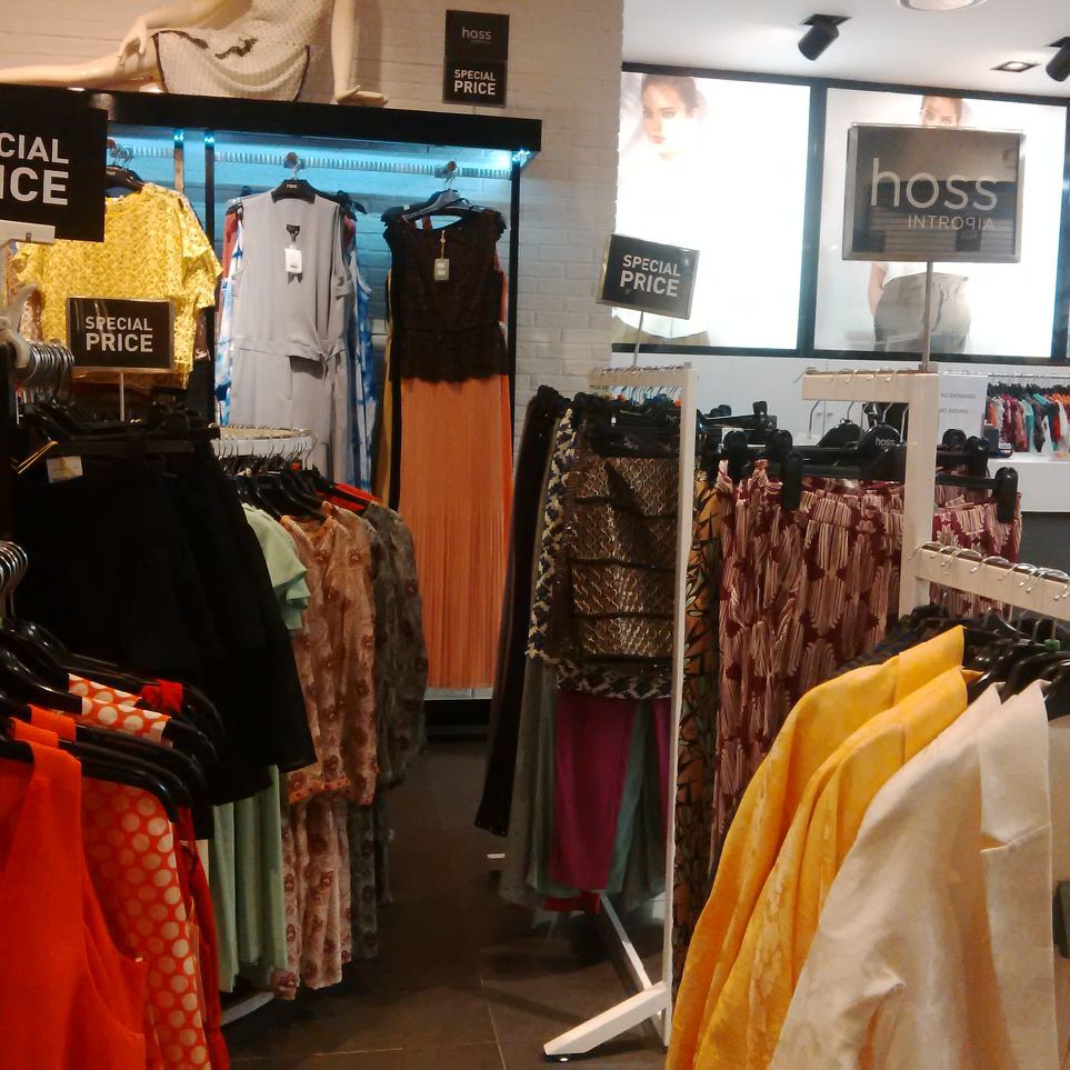 Jika mencari dress kasual, Anda bisa mendatangi area Topshop. Terdapat dress hitam dengan detail cut out yang turun dari Rp 780 ribu jadi Rp 300 ribu. Halter dress pink motif floral turun dari Rp 900 ribu menjadi Rp 350 ribu. Lalu dress hitam lengan pendek dengan potongan A-line turun dari Rp 1,2 juta menjadi Rp 400 ribu.