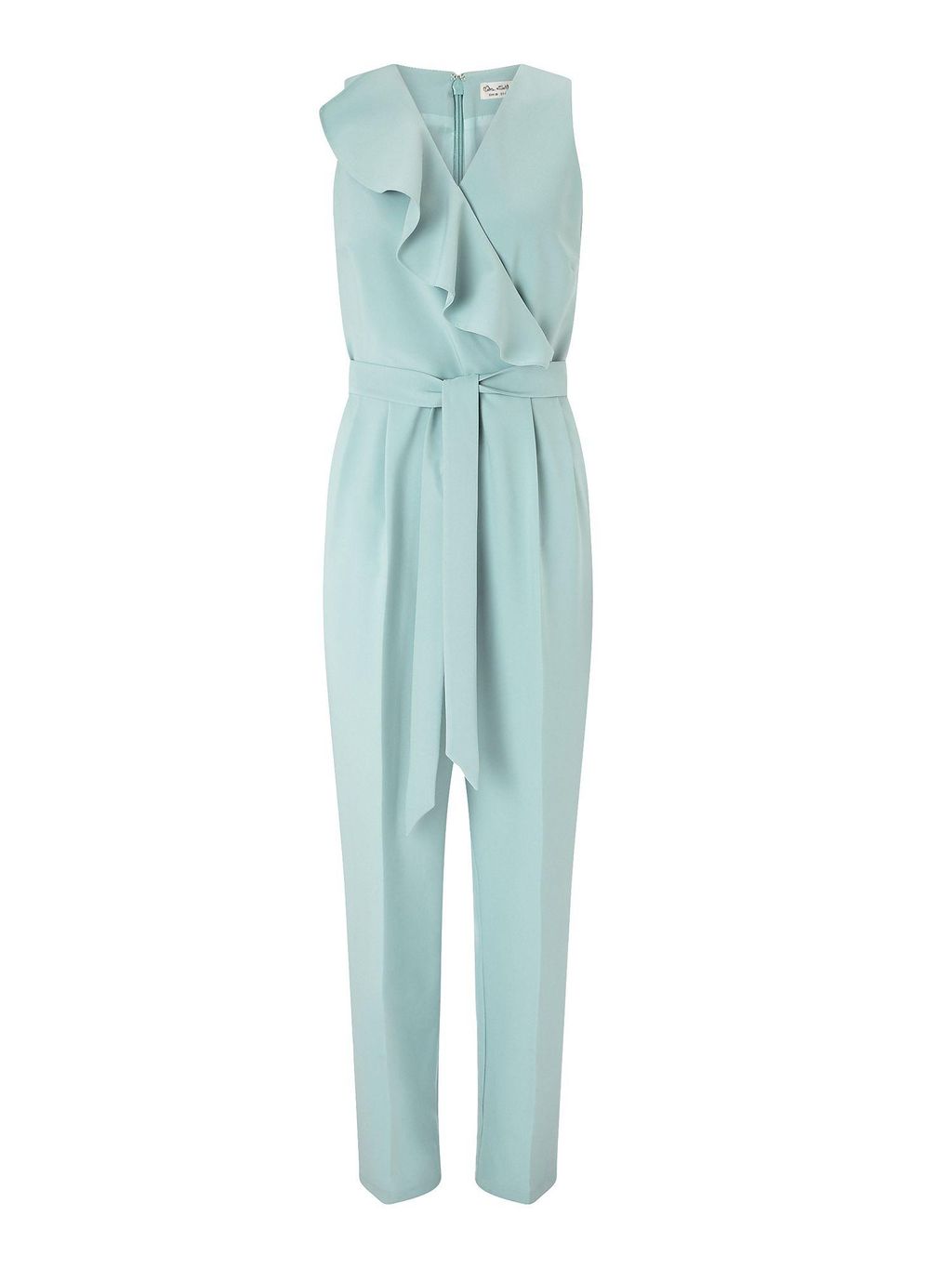 Retailer lain yang menyediakan jumpsuit menarik adalah Miss Selfridge. Item tersebut tampil manis dengan ruffle menyilang di bagian dada. Dihadirkan berpalet biru mint yang lembut, busana berbahan polyester dan elastane tersebut pun semakin tampak feminin. Jumpsuit tanpa lengan yang juga cocok dikenakan menghadiri pesta pernikahan ini bisa Anda miliki dengan Rp 1,3 jutaan.