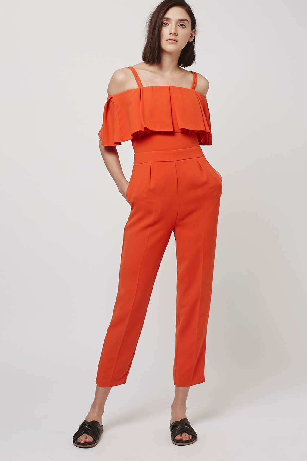 Agar tampilan tak membosankan, sesekali terapkanlah jumpsuit berwarna cerah. Selain untuk terlihat lebih segar, pakaian berpalet terang bisa dapat menaikkan suasana hati Anda. Item seharga Rp 1,5 jutaan berikut pun bisa jadi pilihannya. Dihadirkan bergaya bardot atau off shoulders, busana oranye tersebut tampak manis dan menarik perhatian. Pantas digunakan saat bepergian atau traveling.