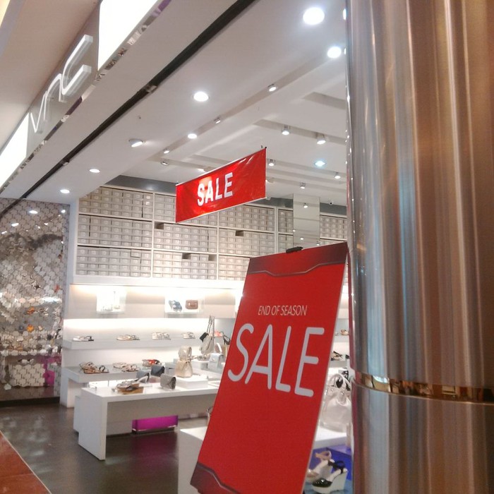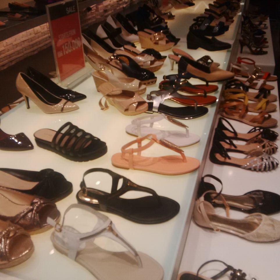 Saat didatangi Wolipop, gerai tersebut tengah cukup ramai pengunjung. Koleksi yang susut harga diletakkan di bagian tengah dan sudah ditandai dengan tulisan Sale. Jenis alas kaki yang tersedia, antara lain sandal, flats, high heels, sampai wedges. Berikut beberapa pilihan yang pantas dimiliki.