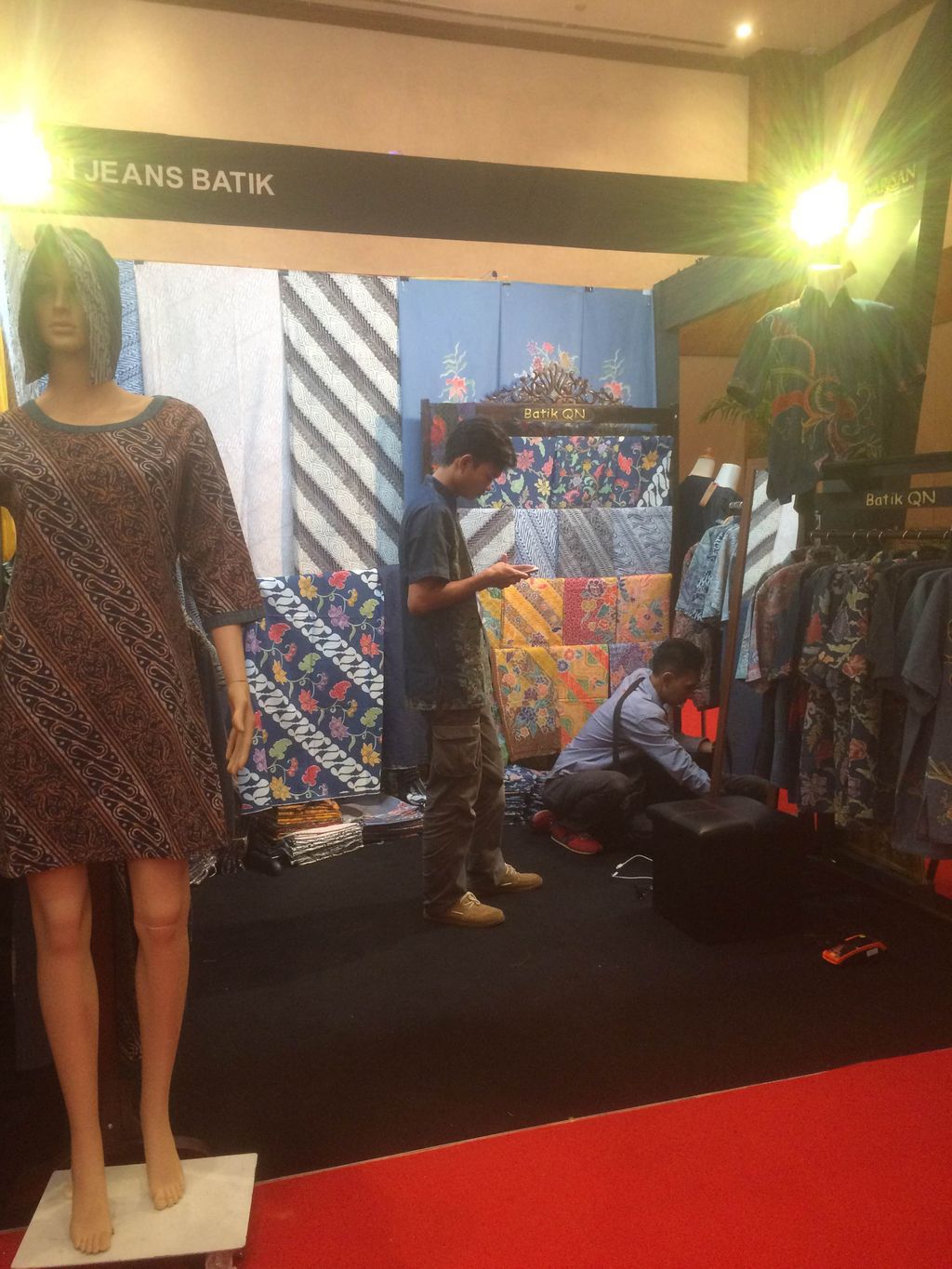 Jeans disukai segala kalangan dan fleksibel dikenakan ke berbagai kesempatan. Anda pun dapat menemukan busana denim dengan bermacam motif batik di pameran Warisan 2016. Produk tersebut ditawarkan QN Jeans Batik. Brand asal Pekalongan, Jawa Tengah itu menyediakan dress seharga Rp 300 ribu sampai Rp 350 ribu. Sedangkan kemeja pria dijual Rp 374 ribuan. QN Jeans Batik juga menjual berbagai kain batik.