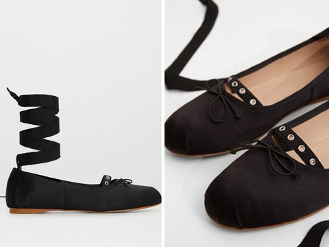 Flats yang juga atraktif ditawarkan oleh Mango. Retailer asal Inggris tersebut dihadirkan dengan aksen lilitan tali dan pita. Sepatu ala ballerina tersebut juga punya detail stud silver sehingga menambah daya tariknya. Pantas dikenakan dengan dress midi sehingga detail menariknya terlihat. Miliki Lace-up ballerinas ini dengan Rp 616 ribuan.