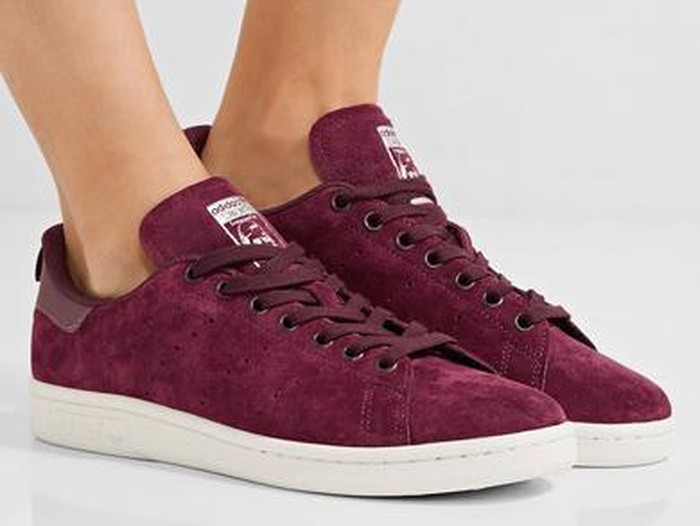 Selain sneakers dengan warna mengkilap serupa satin, opsinya yang bermaterial suede juga diprediksi akan tren. Suede membuat sneakers tampil 'mewah' sehingga pantas diaplikasi untuk acara kasual yang lebih spesial. Merek Adidas pun menawarkan pilihannya. Suede sneaker dihadirkan dengan warna burgundy yang bisa membuat tampilan tak membosankan. Miliki Stan Smith leather-trimmed suede sneakers ini seharga Rp 1,1 jutaan.