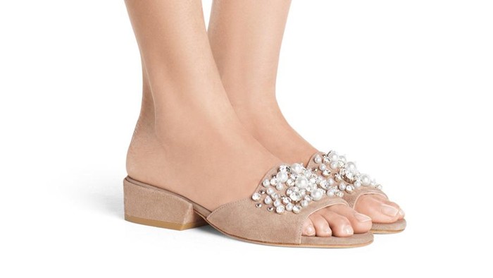 Mencari selop nyaman dengan detail cantik untuk digunakan ke acara pernikahan? Item ini patut dijadikan pilihan. Selop tersebut dihadirkan dengan bagian depan yang lebih terbuka sehingga tidak membuat kaki terlalu gerah. Adapun campuran aksen mutiara dan stud silver yang menjadikannya tambah menawan. Dapatkan sandal ini seharga Rp 6,6 jutaan. (ami/ami)