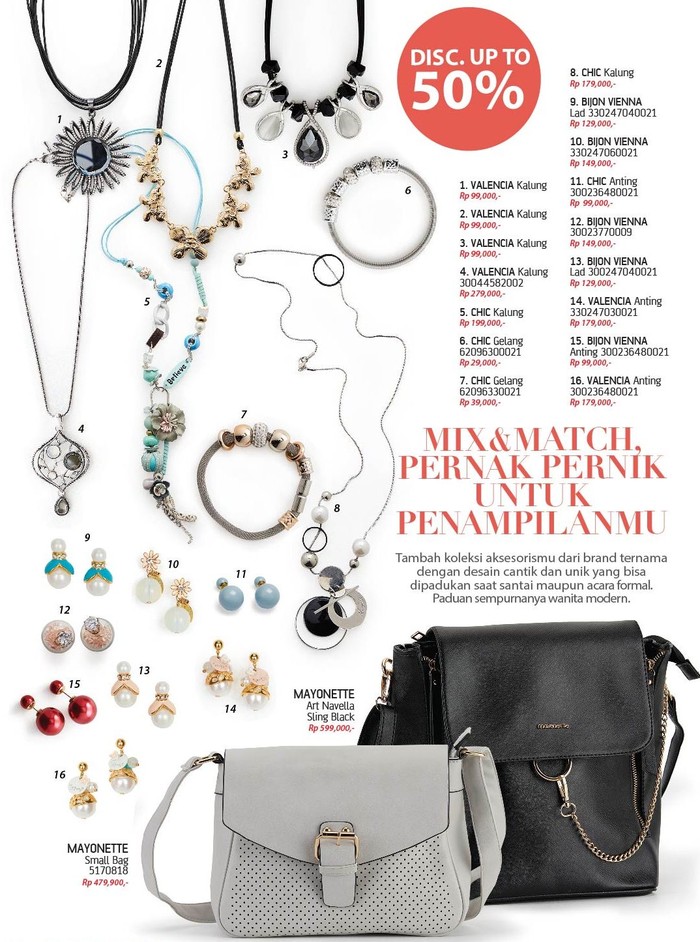 Untuk melengkapi penampilan, menggunakan kalung yang sesuai akan menambah kepercayaan diri. Dapatkan aneka model kalung dari Valencia yang cocok digunakan untuk bekerja atau acara casual dengan teman-teman, seharga Rp 99 ribu/piece saja!