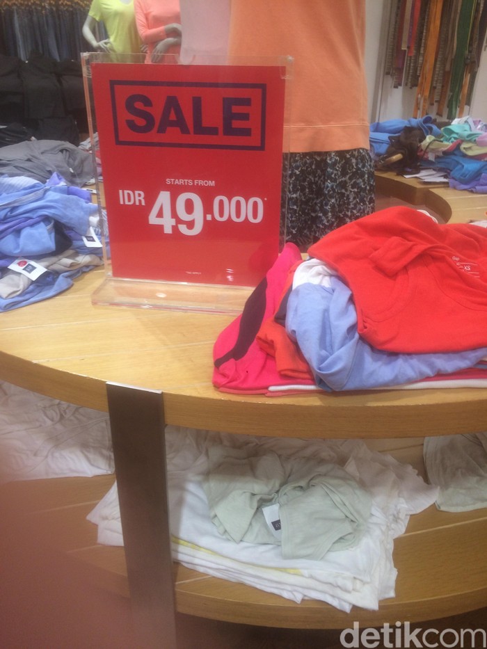 Ketika didatangi Wolipop, gerai tersebut tengah cukup banyak pengunjung yang penasaran dengan gelaran sale. Kali ini, hampir semua pilihan busana di gerai itu dipotong harga. Selain pakaian kasual, ditawarkan pula celana bahan yang pantas dipakai bekerja. Adapun sejumlah opsi sepatu yang susut harga.