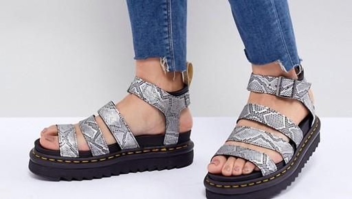 Sandal dengan banyak strap sebelumnya mungkin dianggap kurang cantik sehingga tidak diminati banyak wanita. Namun belakangan banyak pecinta fashion yang justru mengandalkannya. Salah satu sandal strappy serupa sandal gunung menarik ditawarkan Dr. Martens. Opsi seharga Rp 1,7 jutaan berikut pun punya motif kulit ular yang membuatnya semakin atraktif.