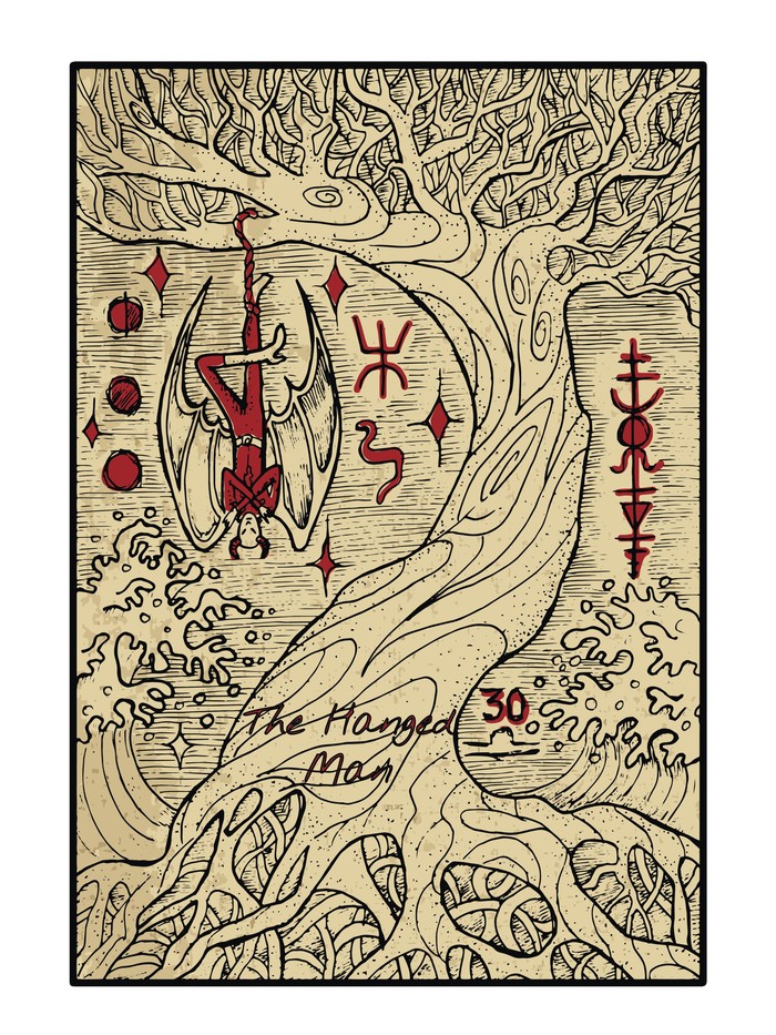 Kartu yang muncul adalah The Devil terbalik, Ten Wands terbalik dan Five Swords. Dari kartu yang terbuka ini, tampaknya kemungkinan tersebut bisa dikondisikan. Namun kartu pertama dan kedua melihat kemungkinan ini seperti dipaksakan.