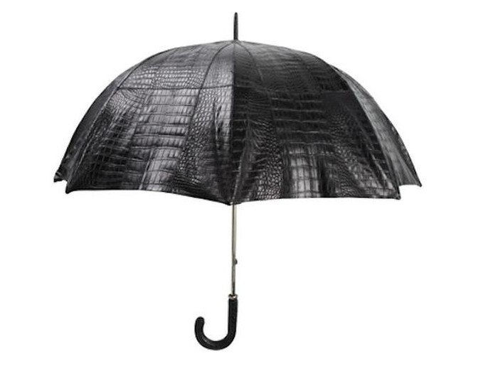 Crocodile Skin Umbrella merupakan buah karya hasil kolaborasi Flavio Briatore, pebisnis ternama asal Italia dan desainer Angelo Galasso. Payung berwarna hitam mengkilap, dengan tekstur kulit buaya yang terlihat jelas membuatnya terkesan mewah. Sementara gagang payung dibuat sesimpel mungkin dan berwarna hitam.